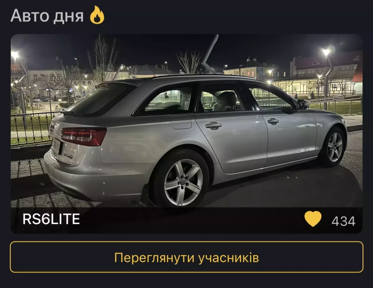 Дякую всім хто проголосував! Навіть не очікував перемогти😬 Якщо чесно моя Ауді нічим особливим не вирізняється🥲 Базова комплектація, слабенький двигун і навіть не кватро, але цей кузов просто має шикарний вигляд!!! А6 С7 в універсалі зі своїм дизайном колись стане дорогою класикою (правда не 2.0tdi на варіаторі)😎