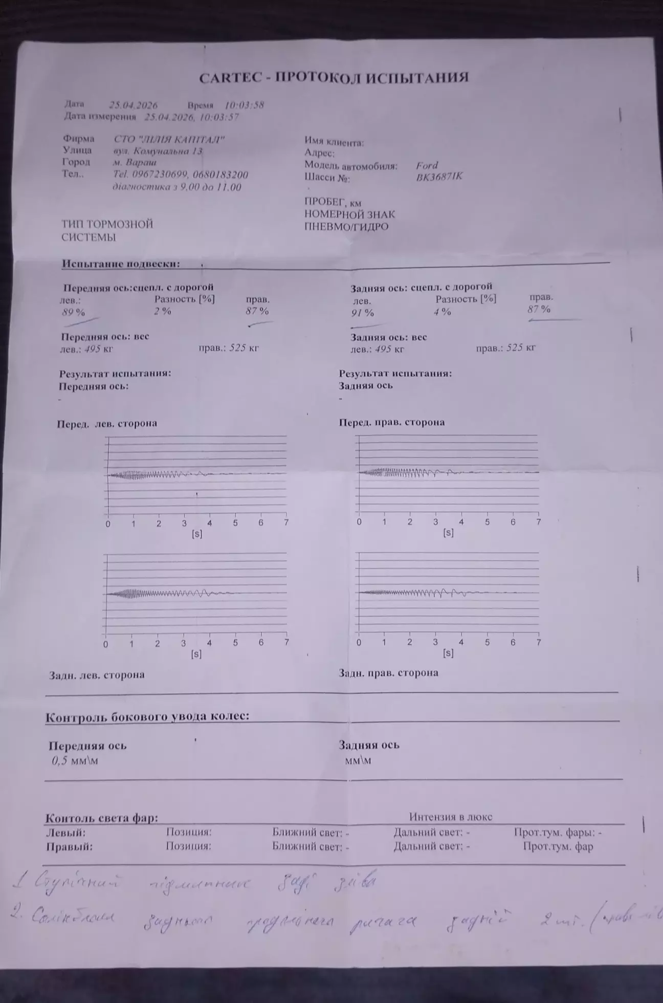 25.04.2026 візит на СТО для проведення діагностики підвіски.