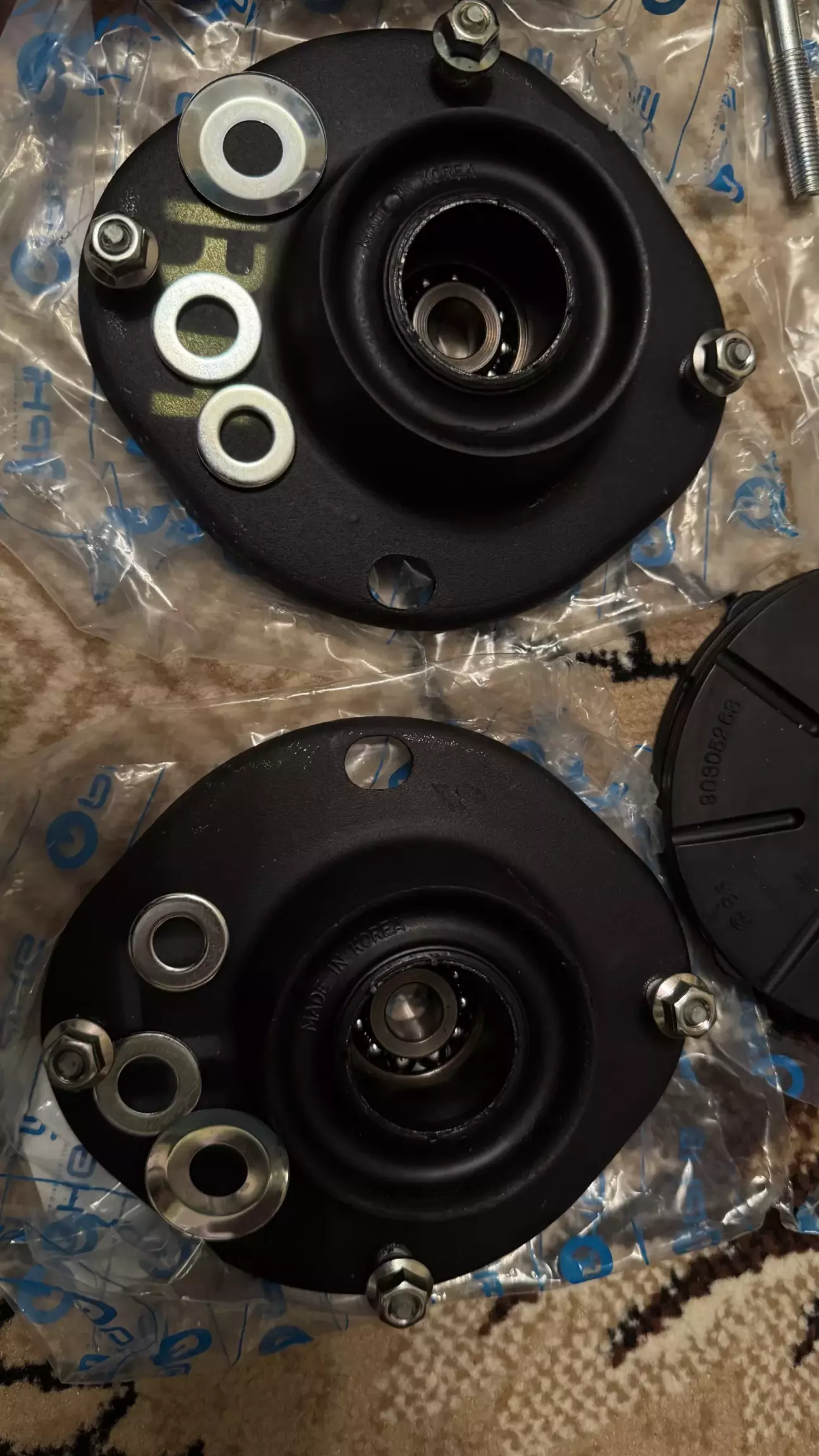 Верхні опори амортизаторів взяв PH - той же оригінал лиш дешевше. Йдуть без гайок(GM), лиш накрутив не знаю для чого😅 Шайби також GM, йдуть окремо від опор.