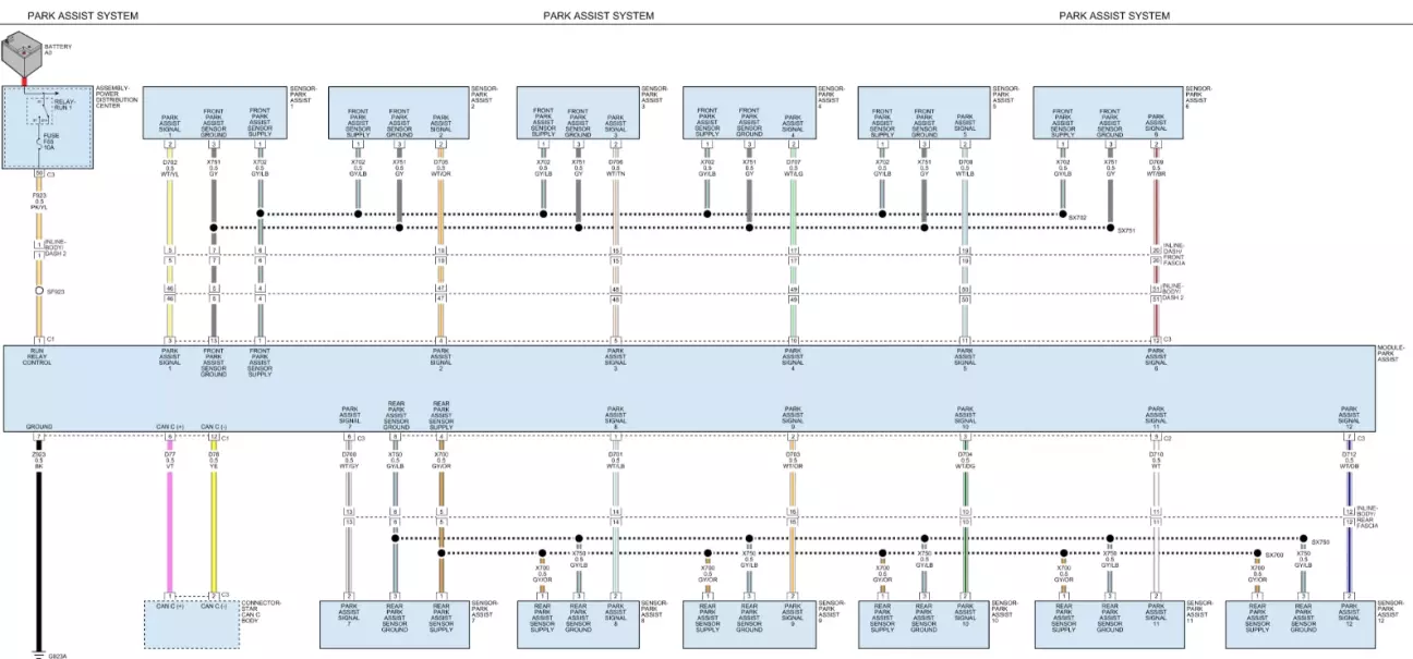 Докупив кабель для підключення передніх парктроників до блоку керування парктроників. Все проклав по заводських місцях. Живлення брав з того ж самого блоку ручника. Підключення робив згідно схеми.