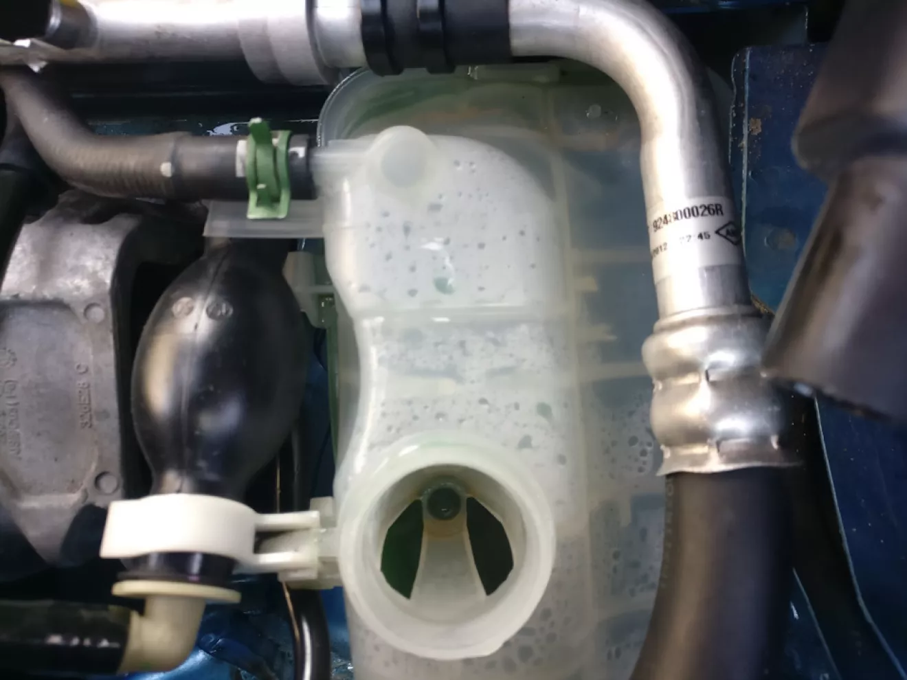 Сегодня утром наблюдал такую ситуацию — проехал 10 км, а печка все дует "холодным", остановился и увидел картину — "приехал" — происходит бурление в бачке ОЖ… стравил воздух с патрубка который идет на печку (за двигателем сзади)… жидкость немного просела… но печка все равно не грела… Походу надо делать вскрытие двигателя… печалька… scenik 3,2012.