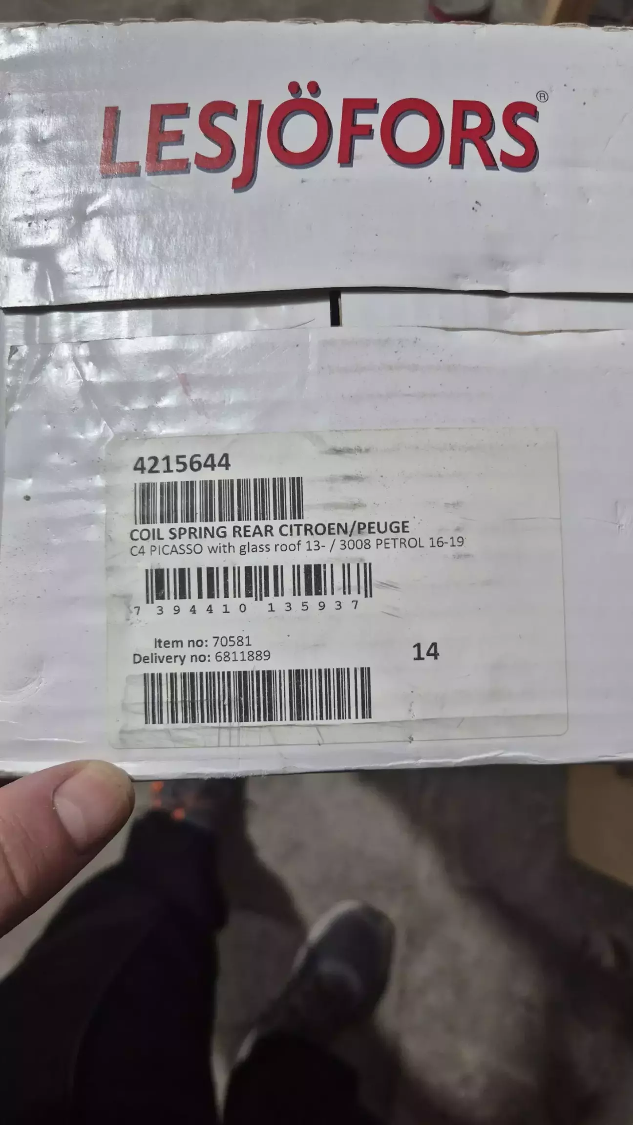 Я задні пружини вже міняв, бо рідні щось стали сильно просідати навіть при 4 людях в машині, і сталося це якось різко (запис тоді в бортовик не робив). Тоді поставив LESJOFORS 4215644 (написано що для машин з панорамним дахом, типу підсилені). Хоча на коробці й не написано Peugeot 308 SW, але всі каталоги видають цей номер.