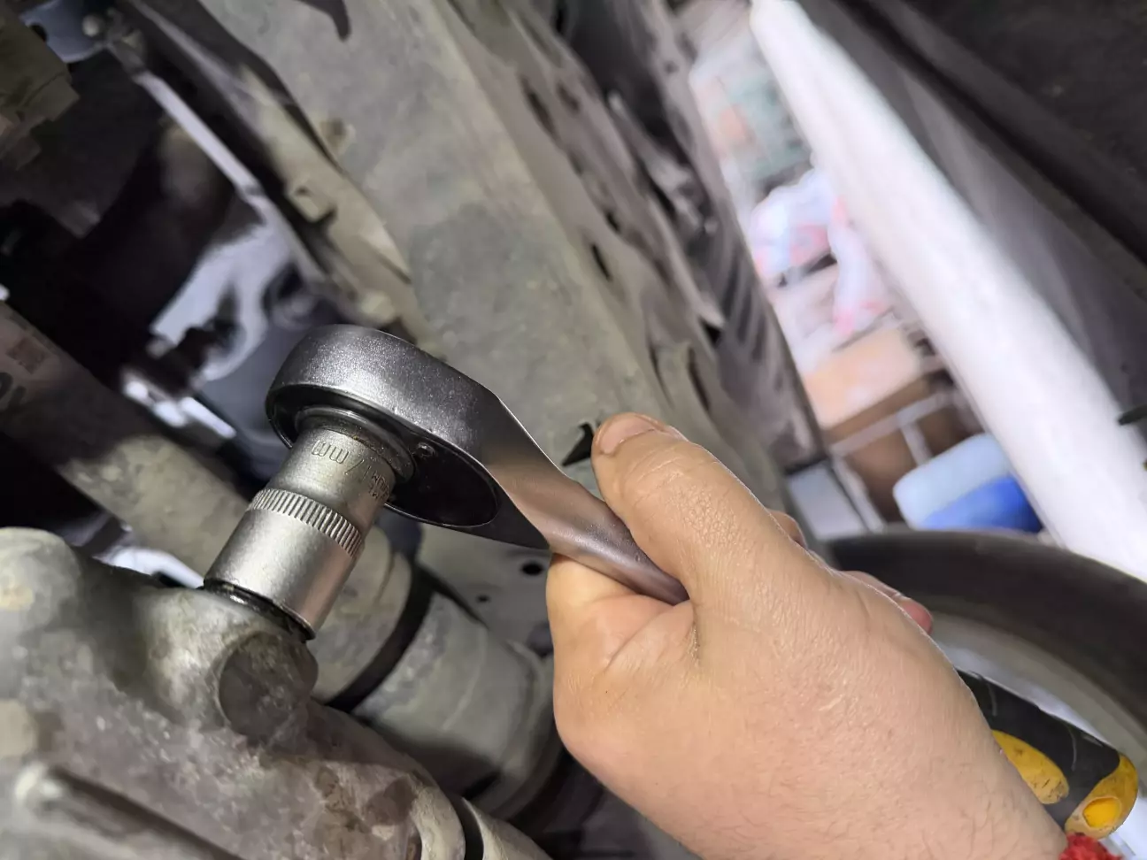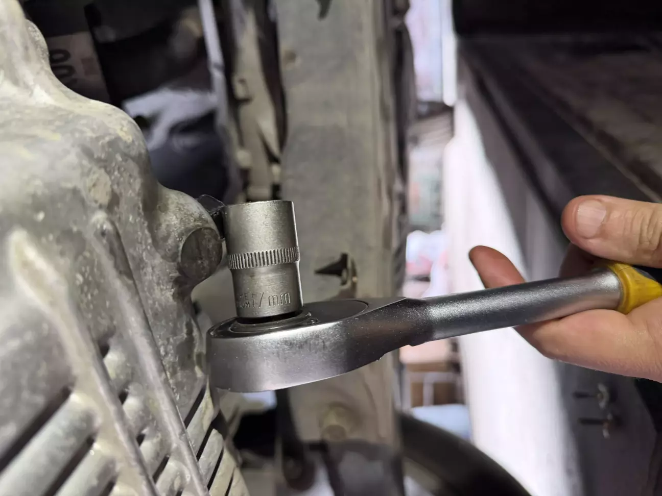 2. Скидаємо захист двигуна, відкручуємо пробку зливу ключ #17