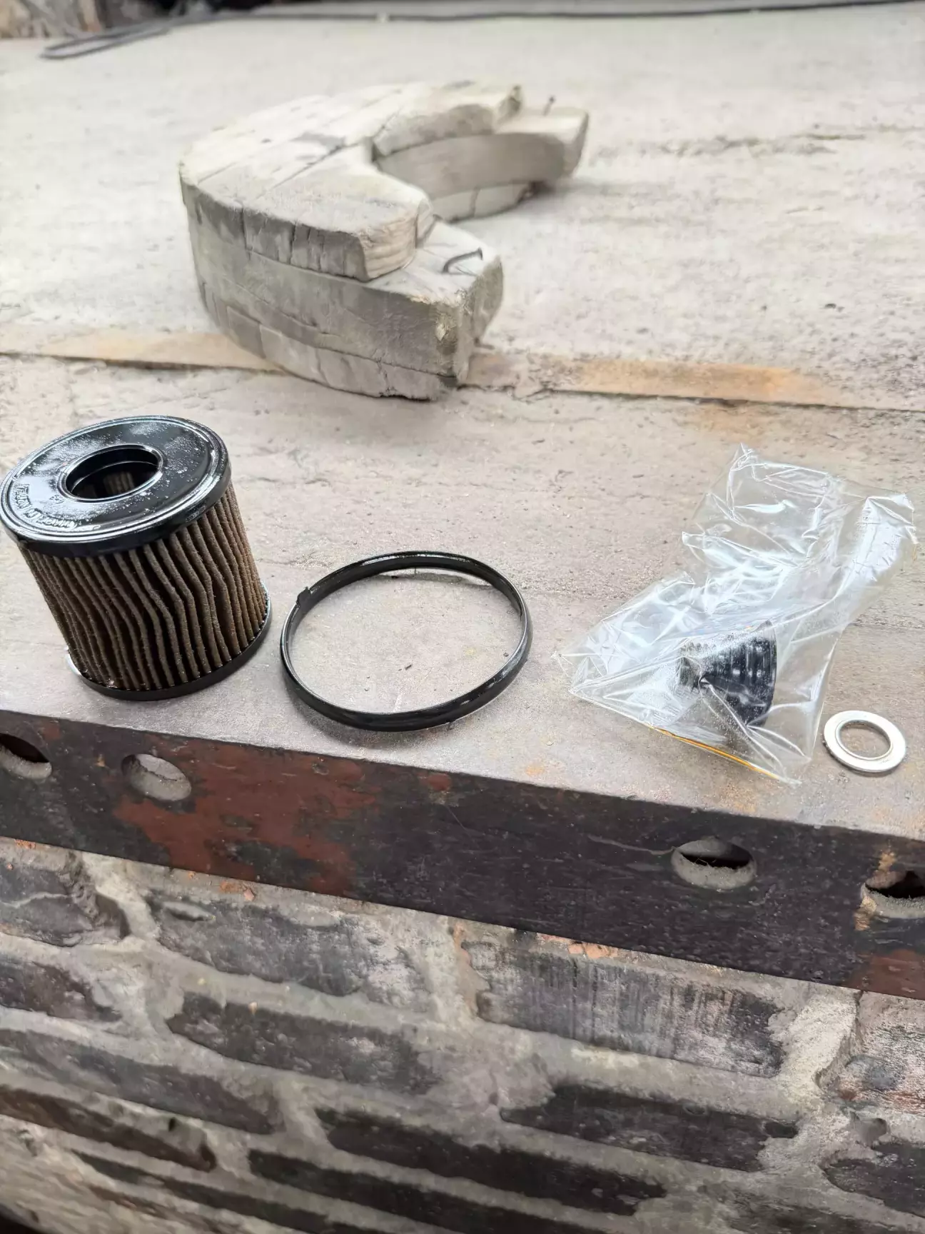І замінюємо фільтруючий картридж, в комплекті йде шайба під зливну пробку, нова пробка корпусу фільтра та ущільнююче кільце, Короче все в одному флаконі