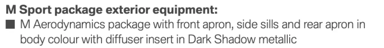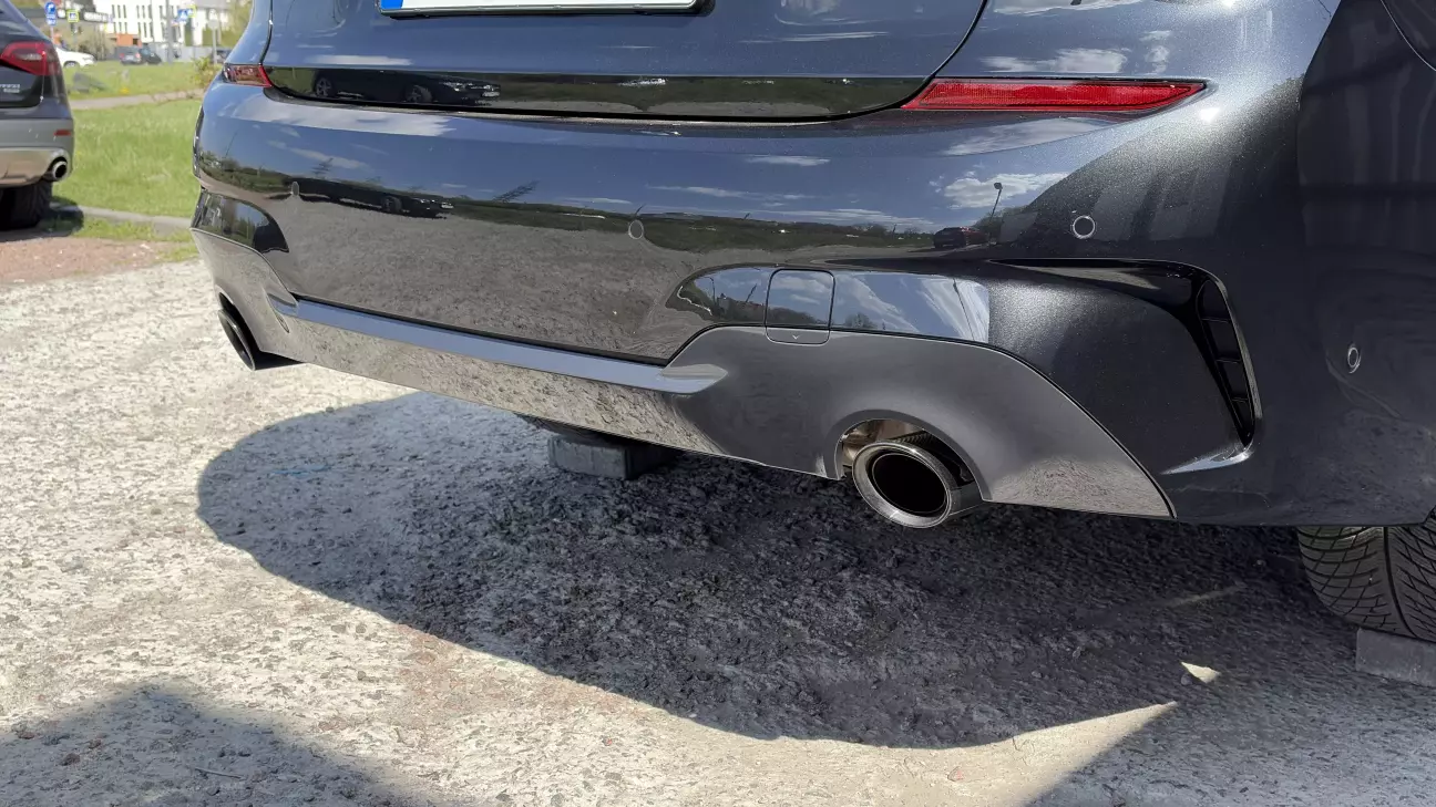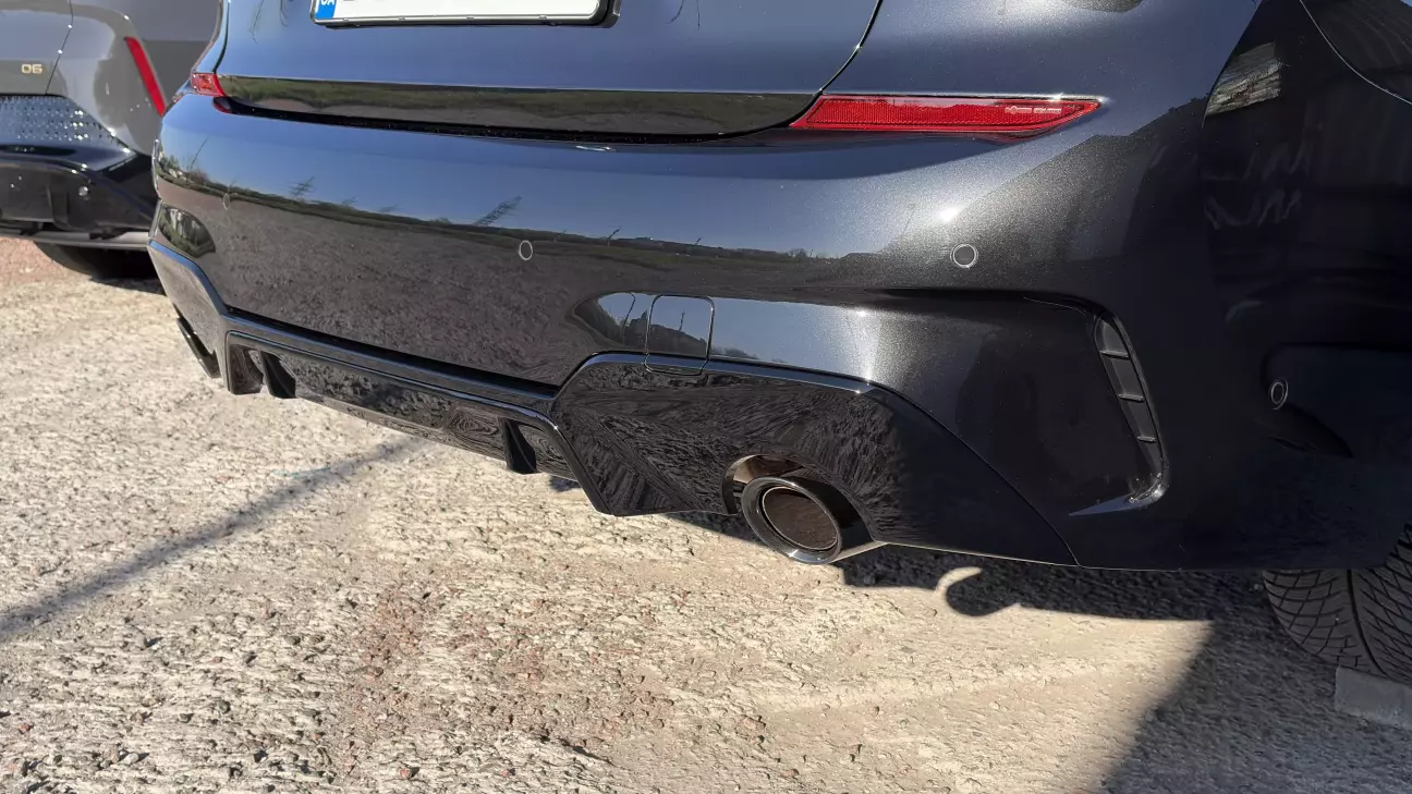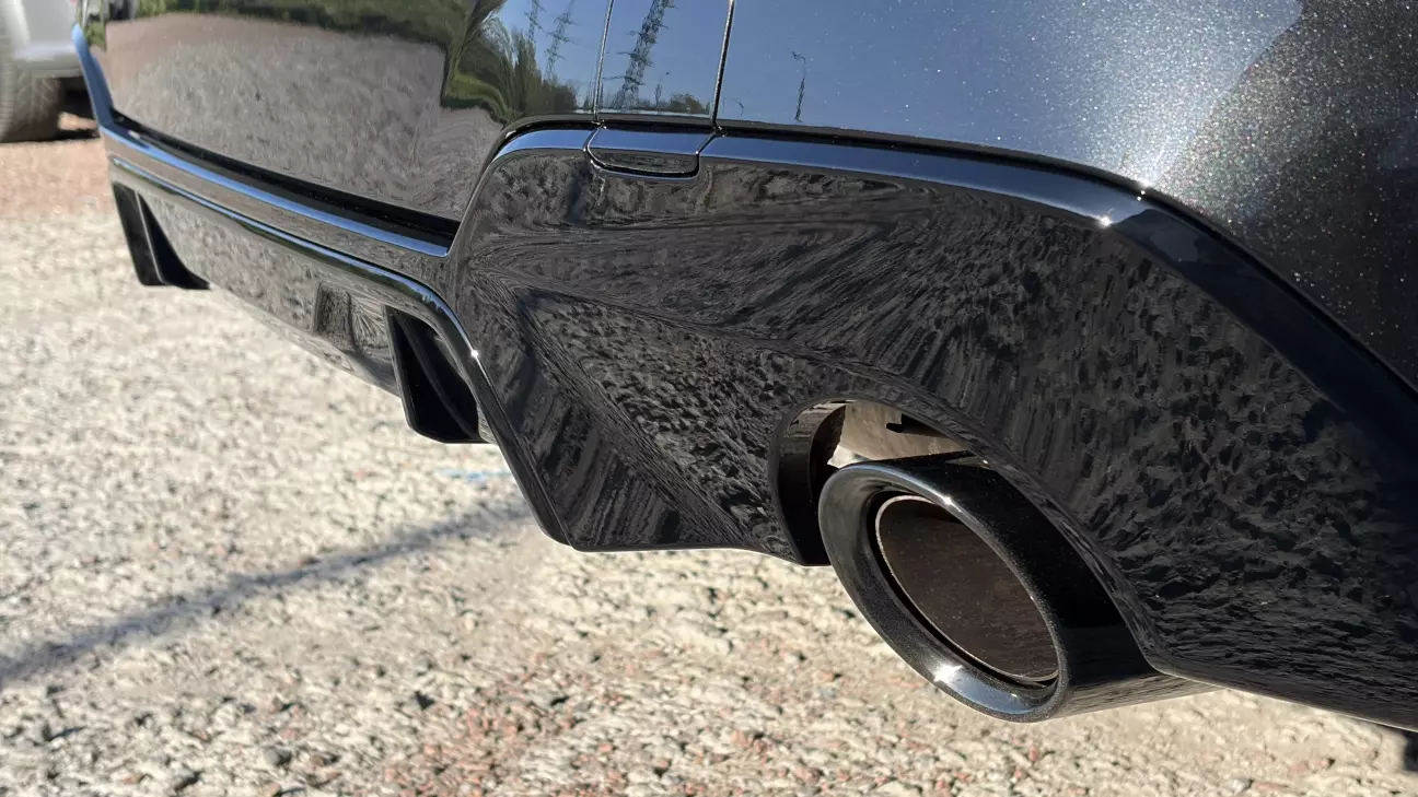 Як тільки купив автомобіль, відразу звернув увагу на одне дуже спірне (субʼєктивно) дизайнерське рішення — дифузор заднього бампера. Він входить в список стандартного обладнання M Sport пакету, і завжди в кольорі Dark Shadow metallic, незалежно від того, якого кольору екстерʼєр авто.