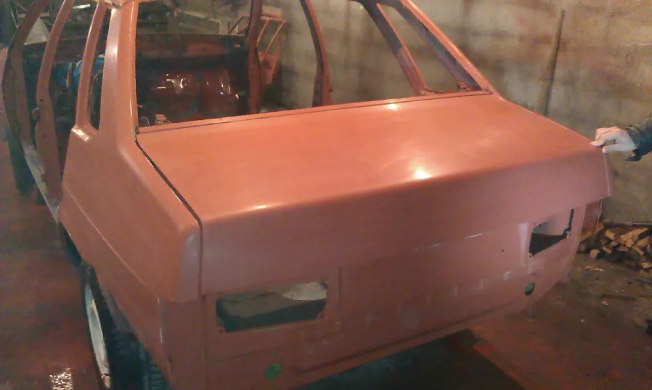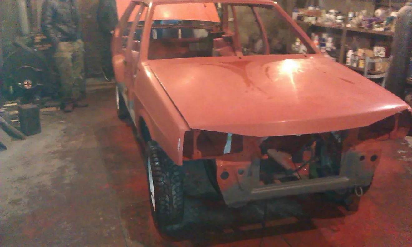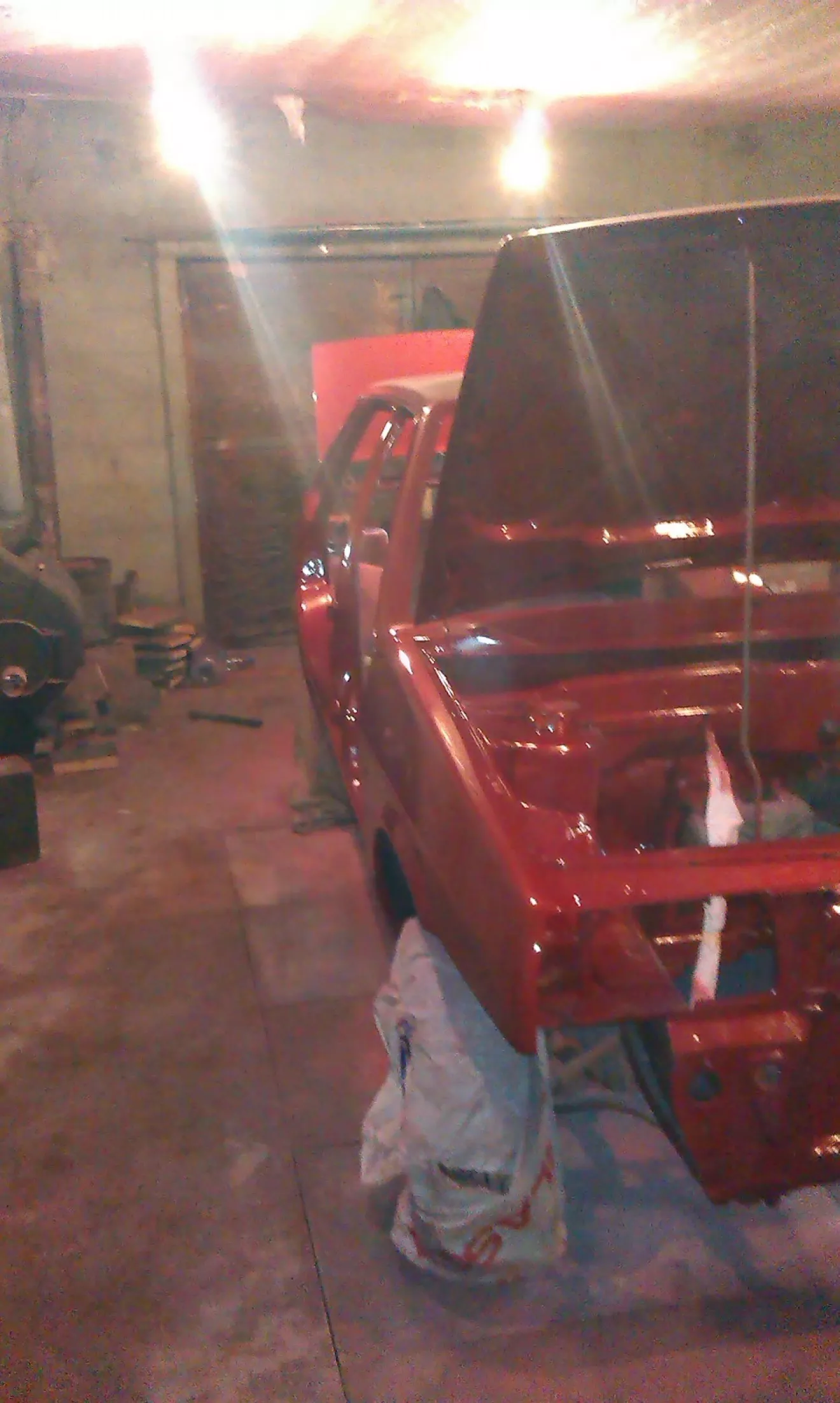 Всем привет.Покрасили машинку мы еще в начале февраля, я уже её собрал и езжу на ней, но настроение что то писать появилось только сейчас.Очень много сил и времени заняла подготовка к покраске, мы с другом просто запарились её тереть, ушло 2 кг шпакла и очень, очень много наждачки.Очень долго не мог определиться с цветом для машины, сначала я хотел облить её в цвет "портвейн", но потом увидел машину в таком цвете грязную и мне перехотелось красить в такой цвет, потом перебрал множество вишнёвых оттенков но тоже ничего не понравилось.В итоге пересмотрев кучу вариантов остановился на цвете "Калифорнийский мак №190".Прикол этого цвета в том, что на солнце он ярко красный, а в тени вишнёвый.Минус этого цвета в том, что при покраске он плохо перекрывается, по этому у нас ушло 3 литра краски.К сожалению фоток мало, так как в процессе просто забывал фотографировать.