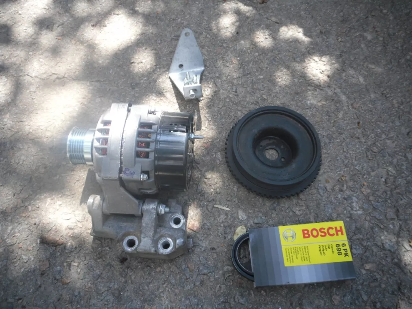 Когда в очередной раз начал хандрить генератор, моё терпение кончилось.Я слетал на рынок и купил новый генератор 2112 80 А.Был еще вариант на 115А с Приоры, но цена оказалась заоблачной.Так как демпфер и нижнее крепление 21082 у меня уже были, мне пришлось докупить верхний кронштейн с натяжителем и новый ремень.Все это поставить на машину особого труда не составило, нужны только инструмент и руки из правильного места.Из плюсов заметил что уменьшилась просадка напряжения при включении мощных потребителей.Минусов не замечено.