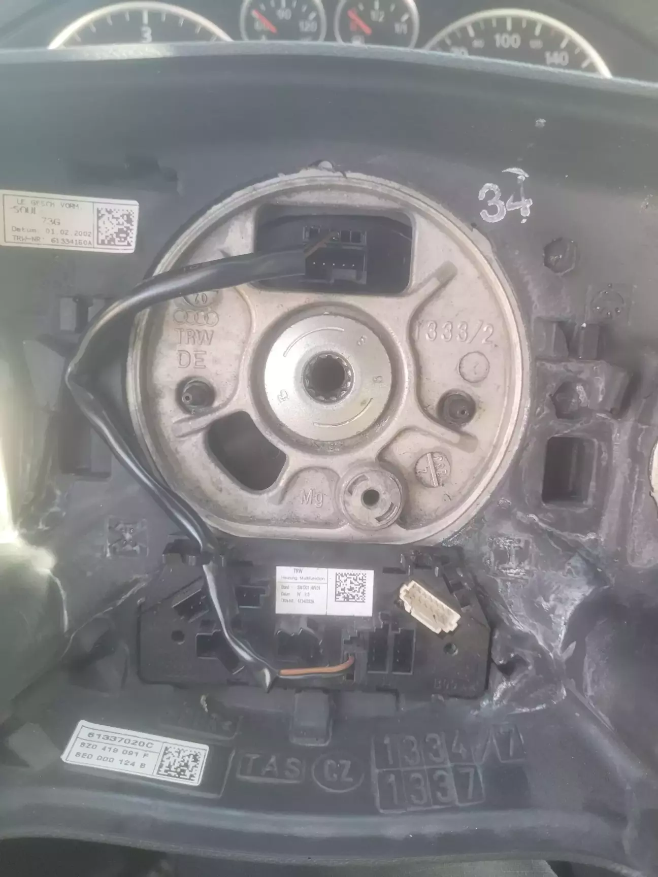 Пластик навколо рульової колонки - дорест. Бо кільце скиду, він же в народі підрульовий шлейф - дорестовий. Десь 1998 рік.