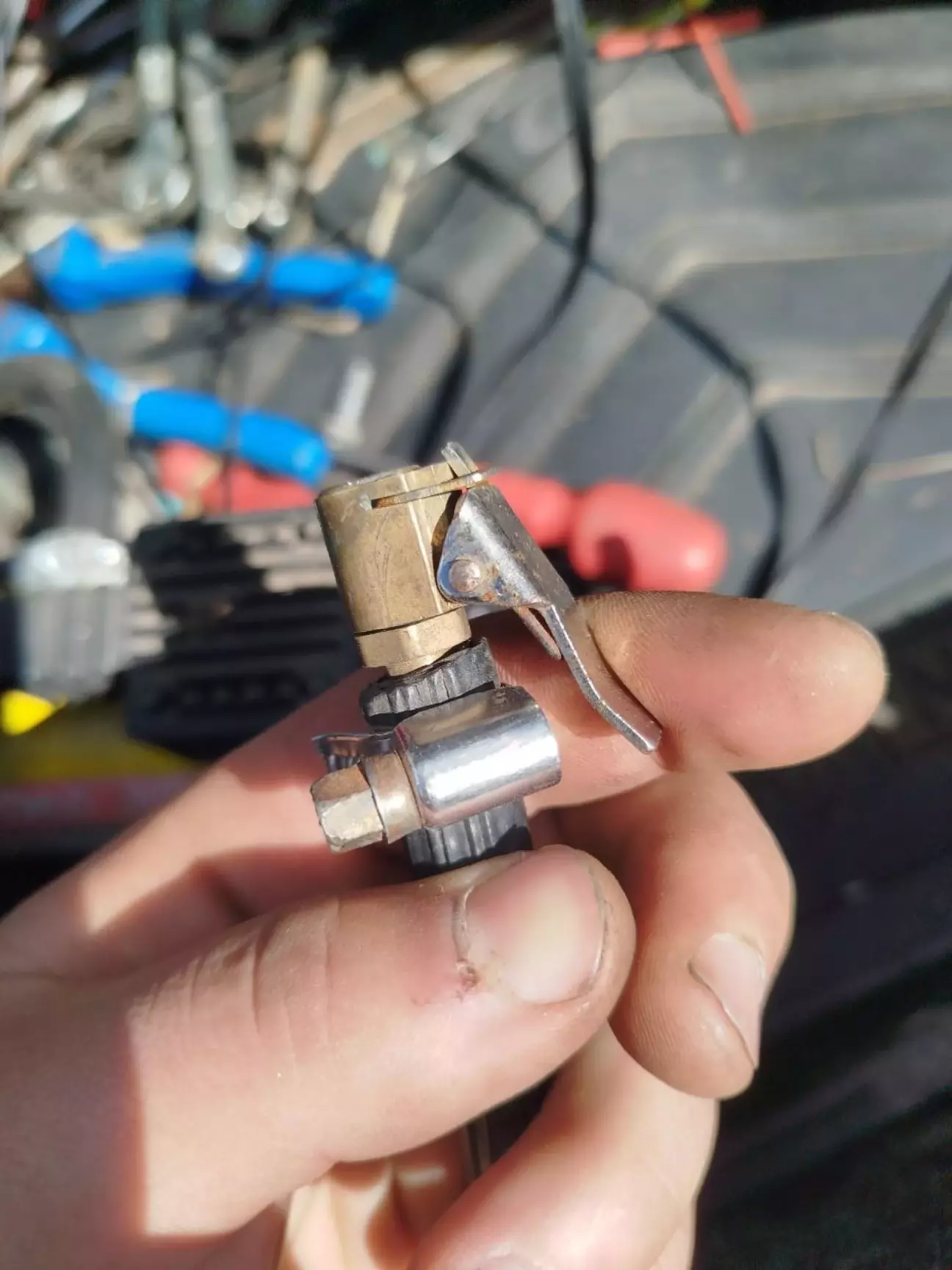 Всім привіт. Давно хотів замінити наконечник на компресорі: замість «прищіпки» поставити той, що накручується на ніпель. Поїхав у магазин, придбав його, а також узяв самозатискні хомути замість черв’ячних — ті були громіздкі та незручні.