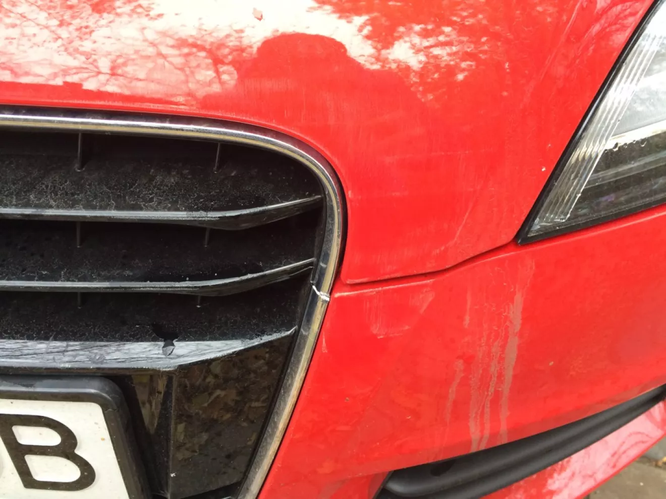 Повреждения минимальны у обоих — у Лады потерся бампер, дал ему 1000 гривен и разьехались мирно. У меня тоже возникли потертости на бампере, капоте и треснула декортативная окантовка радиатора. Кантик прийдется менять как то под настроение, а царапки, хоть и реально не видны, но на психику действуют, думаю заполируюсь.
