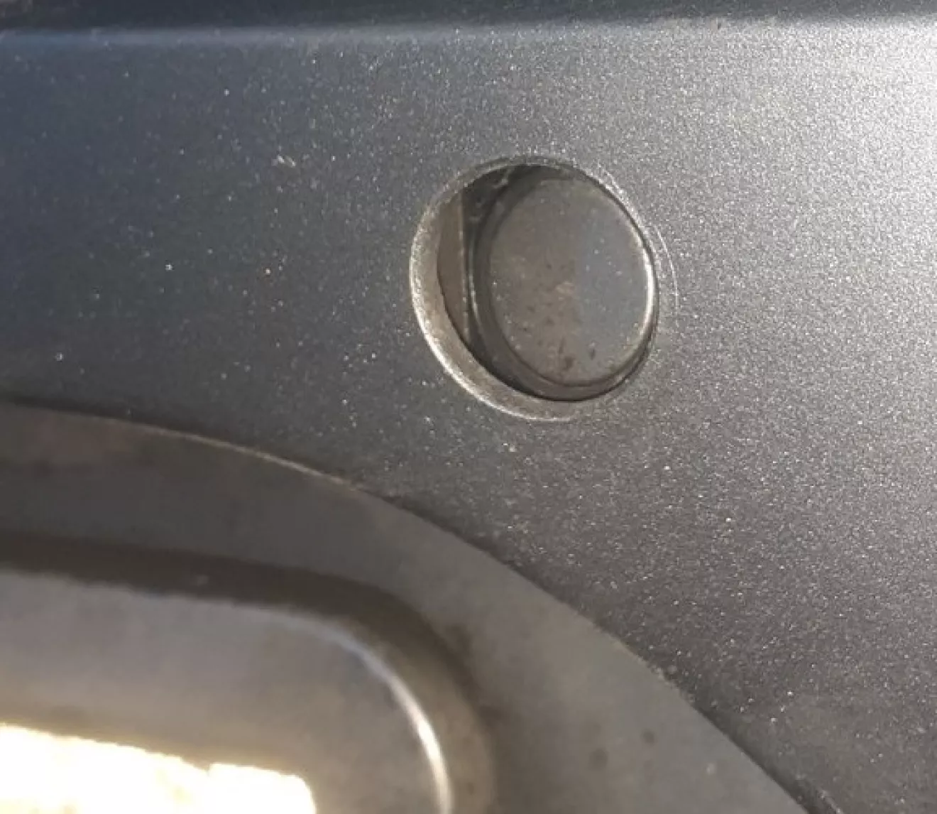 Катался по заснеженному городу по делам, туда-сюда. В какой-то момент при прохождении неровностей (ж/д колеи) начал пищать парктроник. Не понял, в чем дело — вроде бы никаких препятствий не было ни сзади, ни спереди, ни сбоку. На другом ж/д переезде проблема повторилась. Сначала подумал, может парктроники замело снегом/замерзло итд, нужно их очистить. Оказалось хуже :( Правый центральный парктроник на заднем бампере куда-то упал внутрь.