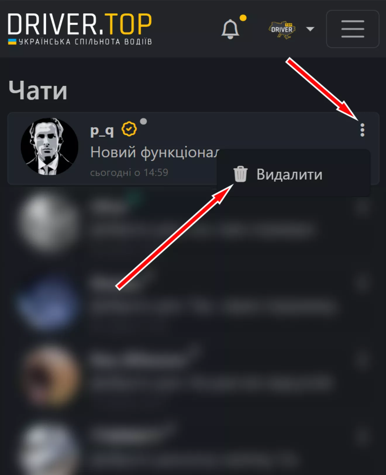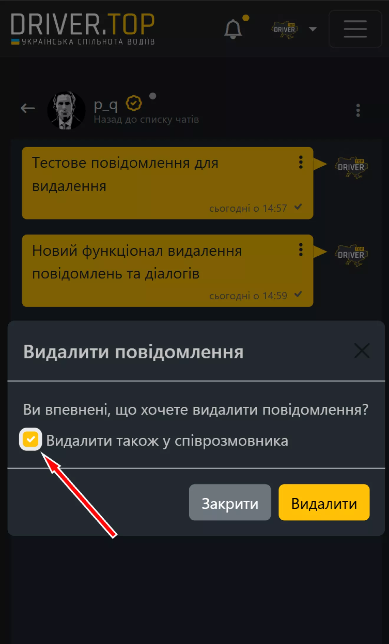 Видалення діалогів у приватних повідомленнях.